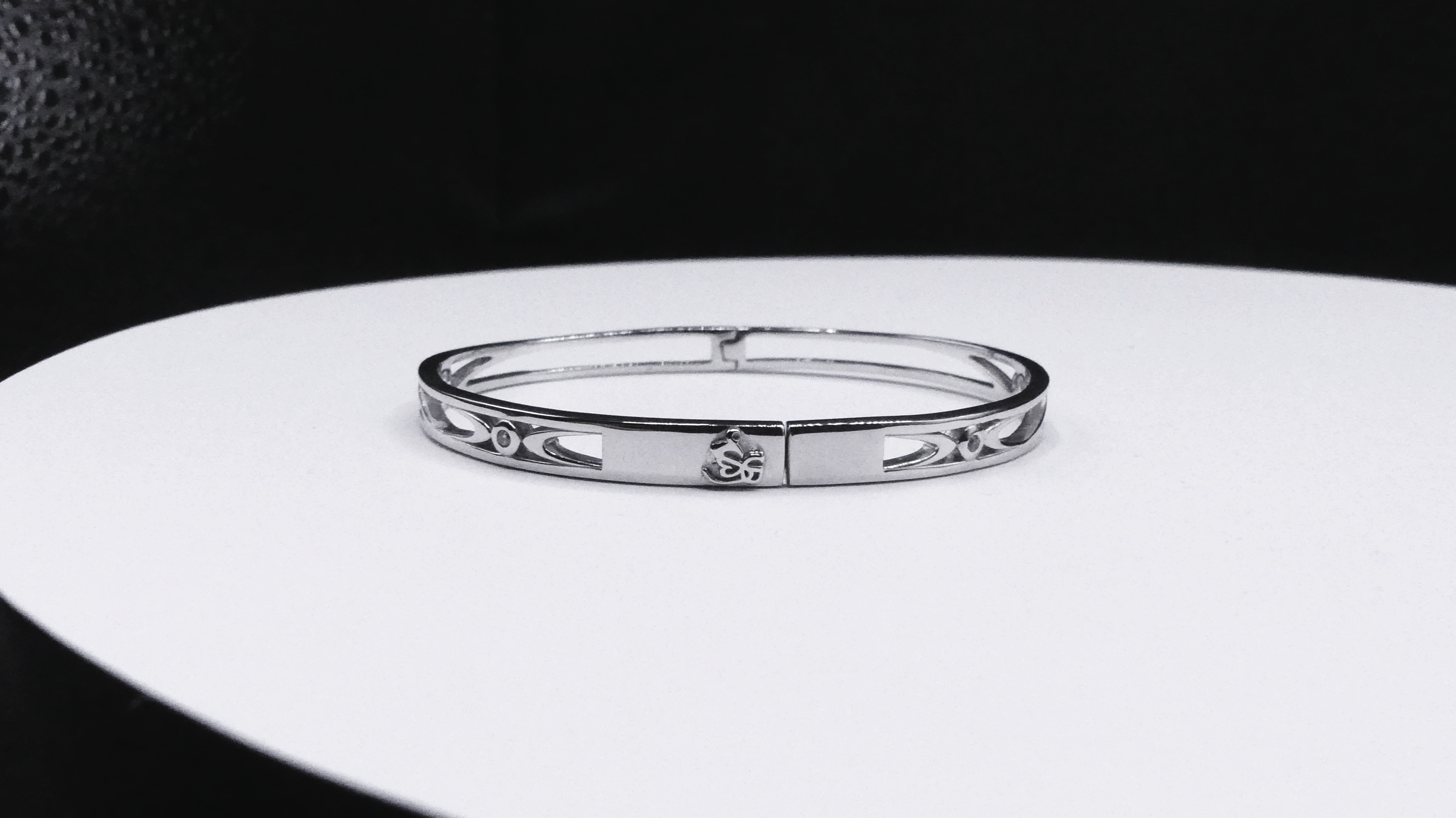Crafted from 925 sterling silver, this bangle features a hidden Om symbol, offering peace and positive energy. Blessed at Vishnu Temple during the Navaratri Festival 2024, it blends elegance and spiritual meaning. A perfect accessory to enhance confidence and inner peace.